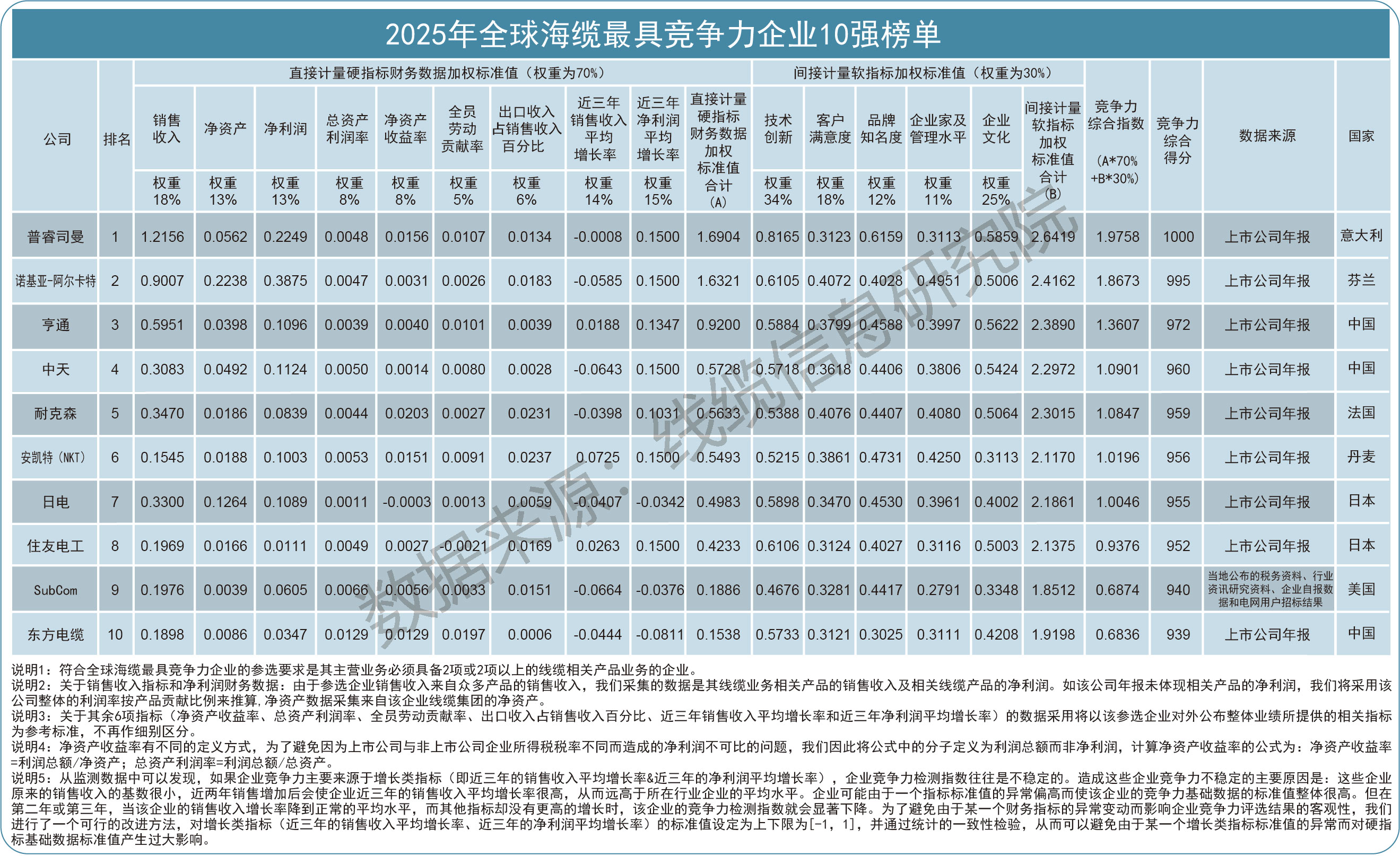 我们希望,通过对全球海缆领域企业竞争力的持续监测,能够如实反映行业现阶段的发展情况,并为全球海缆行业竞争力分析提供有价值的参考依据。