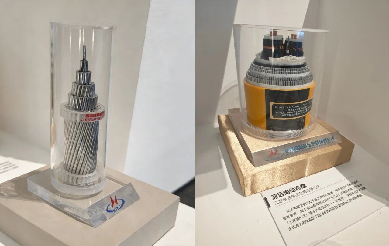 该展区展示了“十四五”期间,在国家双碳目标下,实践可持续、绿色发展的核心成果,包含绿色装备、清洁能源装备等。亨通±1100kV特高压直流输电工程用第二代节能导线与行业特高压直流换流变压器产品等在该展区展示。此外,与大兆瓦风电机组一起展示的还有亨通深远海动态缆,该产品主要应用于“十四五”时期国内首个深远海漂浮式风电项目——“扶摇号”,项目实现了超65米动态缆敷设领域从无到有的跨越。