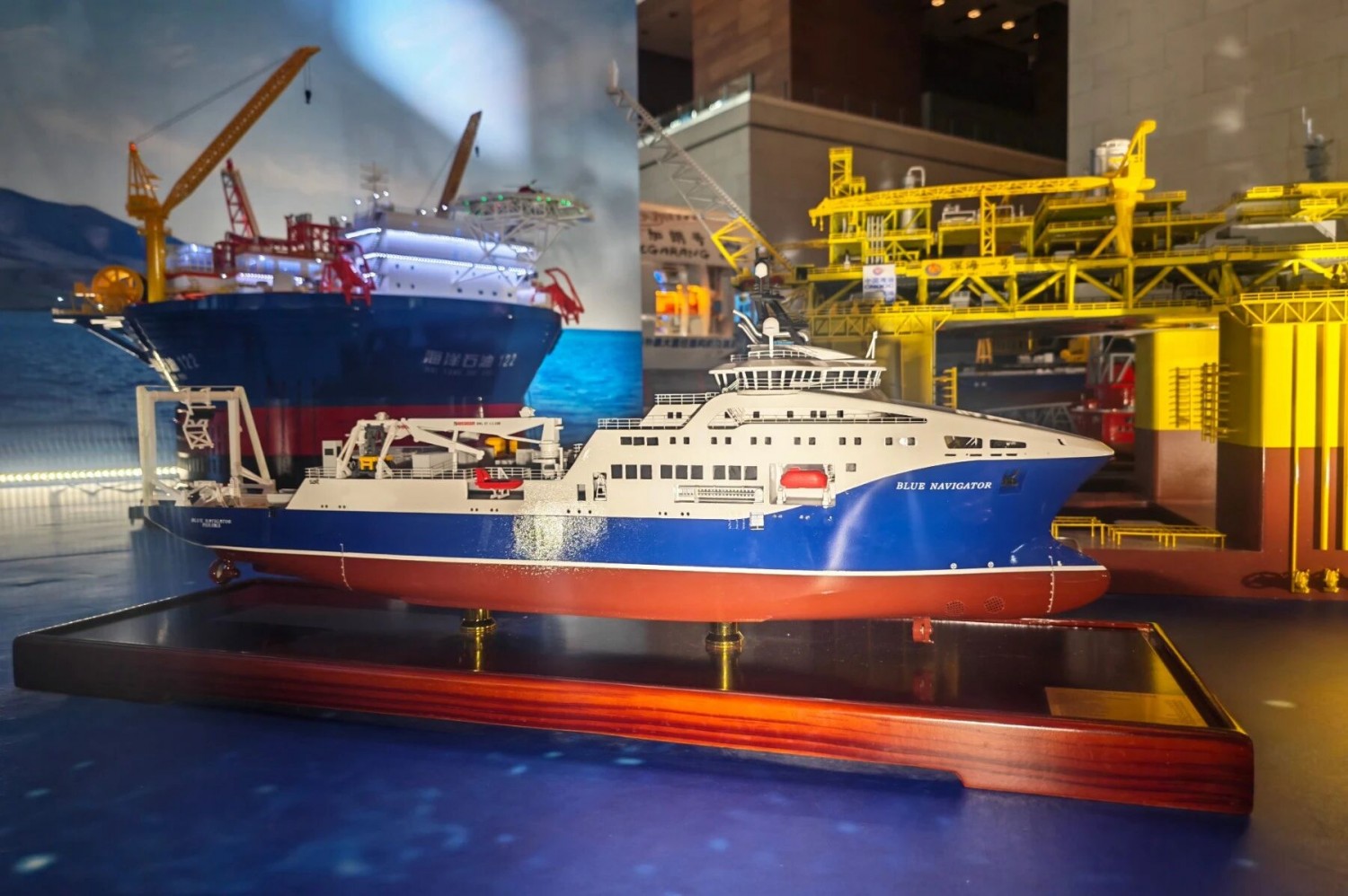 该展示区展示了十四五期间的大型船舶、深海装备、飞机、高铁动车等“国之重器”。亨通全球首个32纤对海底线路中继器原型机、远洋海光缆敷设船“蓝色领航者”作为海洋通信成果代表亮相;亨通±525kV直流海缆、500kV三芯超高压海缆,同“南蛟1号”“海洋石油122”“深海一号”等作为海洋能源成果代表亮相。