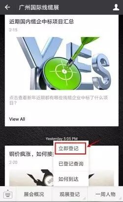 点击“观展登记”按钮下的